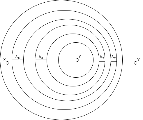 Gdy S zaczyna się poruszać odległość między wyemitowanymi falami, po stronie w którą się porusza, zacznie się zmniejszać, ponieważ źródło „goni je” i emituje kolejną falę bliżej poprzedniej. Sytuacja jest odwrotna ze strony od której źródło „ucieka”, tam fala zostanie wyemitowana dalszej odległości od poprzedniej.