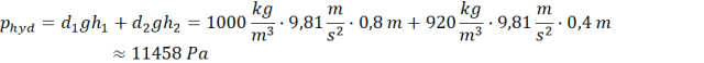 Ciśnienie hydrostatyczne na dnie jest sumą ciśnień hydrostatycznych wywieranych przez wodę i olej. Siłę parcia obliczamy ze wzoru na ciśnienie, gdzie ciśnieniem jest suma ciśnienia atmosferycznego i hydrostatycznego, a powierzchnią jest podstawa naczynia.