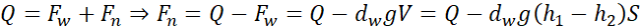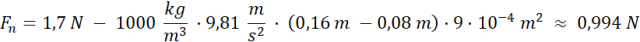 W tym zadaniu oblicz siłę naciągu nici, która trzyma probówka o ciężarze Q = 1,7 N i polu przekroju poprzecznego S = 9 cm2 zanurzoną w wodzie na głębokość h1 = 16 cm, jeśli woda w probówce znajduje się na poziomie h2 = 8 cm powyżej jej dolnej krawędzi. Gęstość wody to