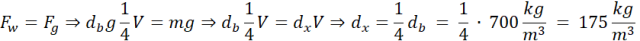 Zanurzenie klocka ustali się, gdy siła wyporu zanurzonej części zrównoważy jego siłę ciężkości: