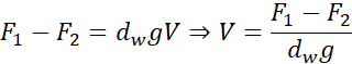 Siła wyporu jest różnicą ciężaru kulki przed i po zanurzeniu: