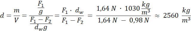 W tym zadaniu oblicz gęstość szkła, z którego zrobiona jest kulka, której ciężar w powietrzu wynosi