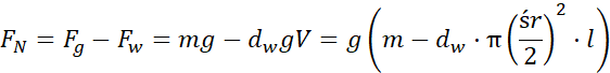 Siła naciągu liny jest różnicą ciężaru batyskafu i siły wyporu wody: