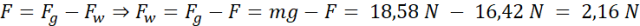 Siła wskazywana przez siłomierz jest różnicą ciężaru i siły wyporu: