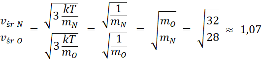 Stosunek prędkości cząsteczek azotu to cząsteczek tlenu: