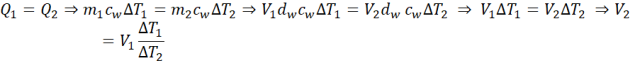 W tym zadaniu oblicz objętość wody o temperaturze T2 = 48oC należy dolać do V1 = 15 l wody o temperaturze T1 = 20oC, aby temperatura końcowa wody w ustaliła się na Tk = 36oC.