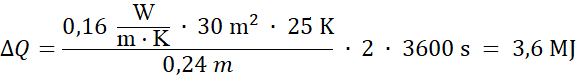 Odpowiedź: Utrata ciepła przez jedną ścianę w ciągu 2 godzin jest równa 3,6 MJ.