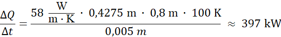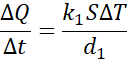 Korzystamy ze wzoru na szybkość przepływu ciepła przez dwie warstwy o różnych współczynnikach przewodnictwa cieplnego i różnych grubościach. Różnica temperatur w stopniach Celsjusza jest taka sama jak w kelwinach.