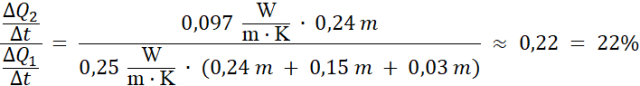 Szybkość przewodzenie ciepła po dociepleniu stanowi 22% wartości początkowej, czyli przez ścianę przenika 78% mniej ciepła.
