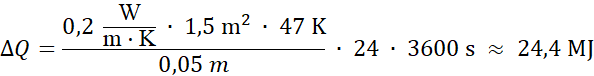 Korzystamy ze wzoru na szybkość przewodzenia ciepła. Różnica temperatur w stopniach Celsjusza jest taka sama jak w kelwinach.