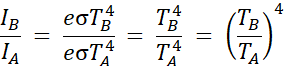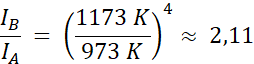 W tym zadaniu oblicz, ile razy wzrosło natężenie promieniowania emitowanego przez drut, jeśli w sytuacji A ma on temperaturę TA = 700oC, a w sytuacji B TB = 900oC. Współczynnik emisji wynosi e = 1.