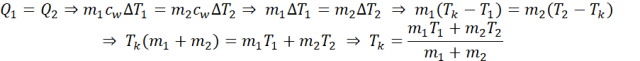 W tym zadaniu oblicz temperaturę wody po zmieszaniu m1 = 0,5 kg gorącej wody o temperaturze T1 = 47oC z m2 = 0,15 kg zimnej wody o temperaturze T2 = 4oC.