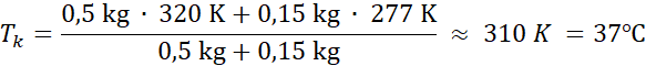 Odpowiedź: Woda będzie miała temperaturę około 37oC.