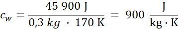 W tym zadaniu oblicz ciepło właściwe aluminium, jeśli patelnia o masie m = 0,3 kg i temperaturze początkowej T0 = 20oC do momentu osiągnięcia temperatury T = 190oC pobrała Q = 45,9 kJ ciepła.
