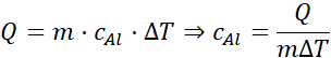 Odpowiedź: Wyznaczone ciepło właściwe aluminium wynosi