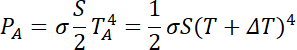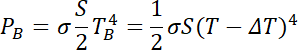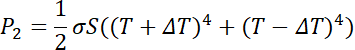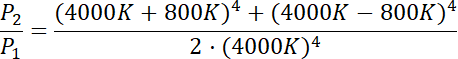 Moc promieniowania ciała, po zmianie temperatury, wyrażamy jako sumę mocy promieniowania obu jego połów:
