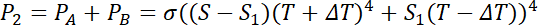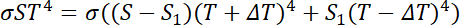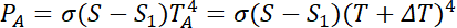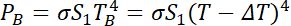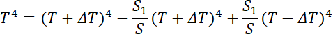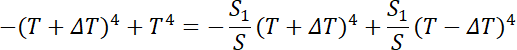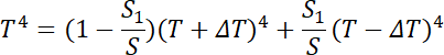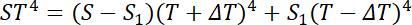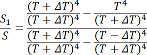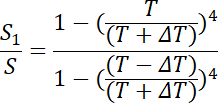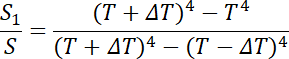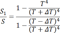 uzyskasz proporcję powierzchni ciała, która musi mieć niższą temperaturę, aby moc promieniowania ciała pozostała taka sama.