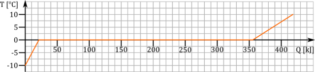 W tym zadaniu oblicz ilość ciepła potrzebną do otrzymania z m = 1 kg lodu o temperaturze początkowej T1 = -10oC, wody o temperaturze T2 = 10oC i naszkicuj wykres zależności temperatury lodu od dostarczonego ciepła. Przyjmij ciepło właściwe lodu