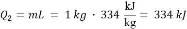 Dzielimy przejście wody na etapy, które są albo zmianą temperatury i opisujemy je wzorem na ilość ciepła potrzebną do ogrzania ciała o temperaturę