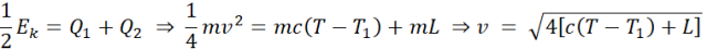 W tym zadaniu oblicz prędkość pocisku o temperaturze początkowej T1 = 22oC, który pod wpływem uderzenia rozgrzał się i stopił, jeśli jego ciepło właściwe to