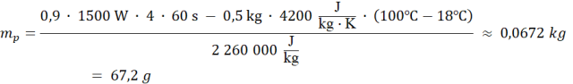 W tym zadaniu oblicz masę wody, która wyparowała z czajnika o mocy P = 1500 W i sprawności
