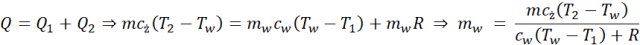 Dzielimy proces na etapy, które są albo zmianą temperatury i opisujemy je wzorem na ilość ciepła potrzebną do ogrzania ciała o temperaturę