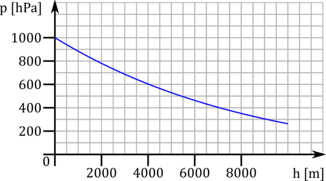 W tym zadaniu na podstawie wykresów ciśnienia powietrza od wysokości n.p.m. oraz temperatury wrzenia wody od ciśnienia określ, jaka jest temperatura wrzenia wody na wysokości h = 7000 m n.p.m. Oblicz czas potrzebny do zagotowania wody na tej wysokości, jeśli do kuchenki o mocy P = 2,6 kW i sprawności cieplnej