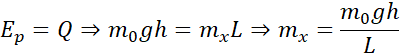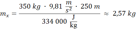 Energia kinetyczna w momencie zderzenia (równa energii potencjalnej na początku upadku) zostaje zamieniona w energię wewnętrzną zużytą na stopienie lodu: