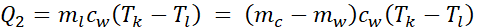 Wyznaczamy ciepło oddane i pobrane ze wzoru na ilość ciepła potrzebnego do zmiany temperatury ciała o