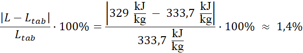 Odpowiedź: Wyznaczone ciepło topnienia to różni się od wartości tablicowej o około 1,4%. Różnica wynika z faktu, że w bilansie cieplnym nie uwzględniliśmy ciepła pobranego przez kalorymetr oraz termometr.