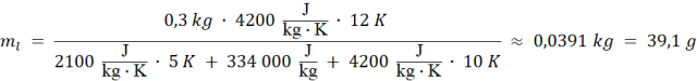 Odpowiedź: Masa lodu wynosi około 39,1 g.