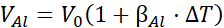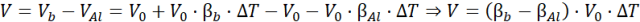 Objętość aluminiowego zbiornika po zmianie temperatury: