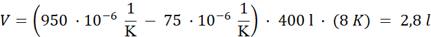 Korzystamy ze wzoru na rozszerzalność objętościową. Zmiana temperatury w skali Celsjusza ma taką samą wartość w skali Kelwina.