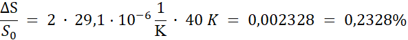Korzystamy ze wzoru na zmianę powierzchni ciała w wyniku rozszerzalności cieplnej. Względny przyrost to iloraz przyrostu i wartości początkowej. Zmiana temperatury w skali Celsjusza ma taką samą wartość w skali Kelwina.