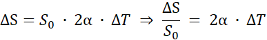 Korzystamy ze wzoru na zmianę powierzchni ciała w wyniku rozszerzalności cieplnej: