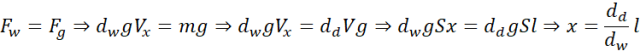Siła naciągu nici będzie równa zero, gdy siła wyporu wody zrównoważy siłę ciężkości pręta: