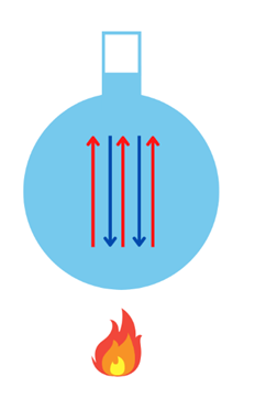 Ciepła woda jest lżejsza, więc przemieszcza się na górę, w tym momencie zimna woda opada na dół naczynia.