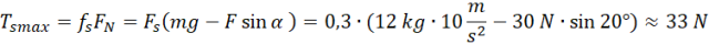 Oblicz maksymalną siłę tarcia statycznego oraz siłę, z jaką działa na skrzynię na kierunku . Porównaj wartości ze sobą. Siła dziecka jest mniejsza niż siła tarcia, co oznacza, że skrzynia nie przesunie się.