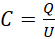 Wzór na pojemność kondensatora: , gdzie C – pojemność kondensatora, Q –zgromadzony ładunek, U – napięcie.