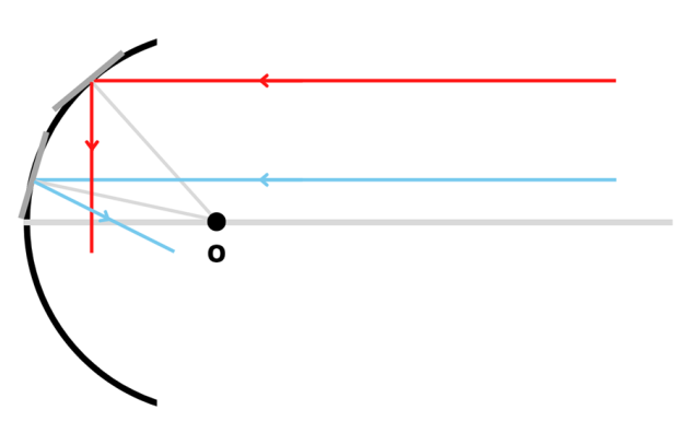 Promienie nie przecięły osi optycznej w tym samym punkcie. To oznacza, że promienie powstałe poprzez odbicie promieni równoległych do osi optycznej przecinają ognisko zwierciadła tylko dla niewielkich odległości promieni padających od osi optycznej.