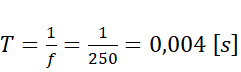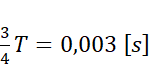 Oblicz okres ruchu ciała. Zaznaczone na osi odcinki są częściami okresu. Pamiętaj, że 1 okres to 1 pełen ruch drgający (przejście przez oba maksima).
