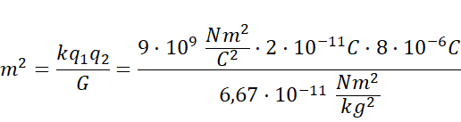 Zapisz wyrażenie na równość dwóch sił: elektrycznej i grawitacji . Odległość się skróci, uzależniając masy kul jedynie ładunków i stałych: elektrycznej i grawitacyjnej. Oblicz masę.