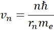Wynika stąd formuła na skwantowany moment pędu i szybkość na n-tej orbicie: