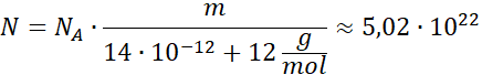 W tym zadaniu musisz wyznaczyć liczbę atomów izotopu węgla-14 w 1 gramie węgla w żywym organizmie oraz jego aktywność.