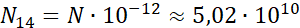 Liczbę jąder węgla-14 w 1 gramie węgla wyznacz z proporcji: