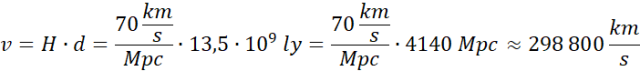 Skorzystaj z prawa Hubble’a, które głosi, iż prędkość ucieczki danej galaktyki wyraża się poprzez