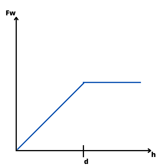 Do narysowania wykresu zależności siły wyporu od głębokości możesz przeanalizować wzór na siłę wyporu: Fw = ρVg. Gęstość cieczy ρ oraz przyśpieszenie ziemskie g nie zmienia się w trakcie zanurzania klocka, zatem siła wyporu jest wprost proporcjonalna do objętości zanurzone części klocka. Kiedy cały klocek będzie już zanurzony w wodzie, siła wyporu będzie stała.