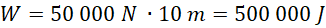 Elektrownia wykorzystuje 50% energii spadającej wody, wykorzystuje zatem 250 000 J energii.
