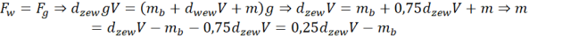Maksymalną możliwą do uniesienia masę osiągniemy, gdy siła wyporu będzie równa całkowitemu ciężarowi balona: