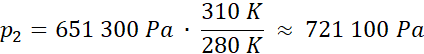 W tym zadaniu oblicz wzrost ciśnienie w oponie o pojemności V = 2 l podczas wzrostu temperatury do T2 = 37oC, jeśli została napompowana do ciśnienia pm = 5,5 bar (zmierzonego manometrem) w temperaturze T1 = 7oC i ciśnieniu atmosferycznym p = 1013 hPa.